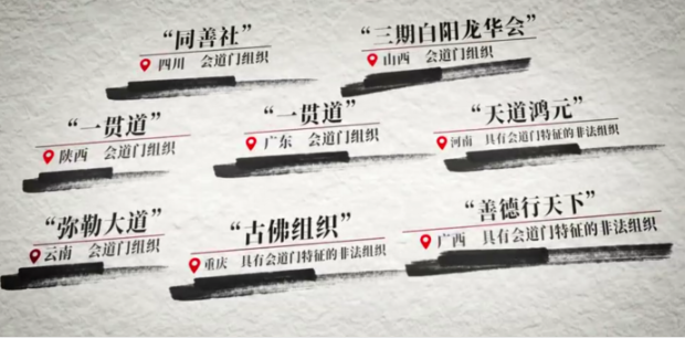 然而,仍有一批会道门组织头目和骨干分子一直以来暗中潜藏、伺机复辟,近年来在四川、重庆、山西、河南、陕西、云南、广东、广西等地散播“无生老母”“三期末劫”等歪理邪说,精神控制成员,聚敛钱财奸女,不惜以幼儿作为侵害对象,甚至龙袍加身妄图“登基”复辟……